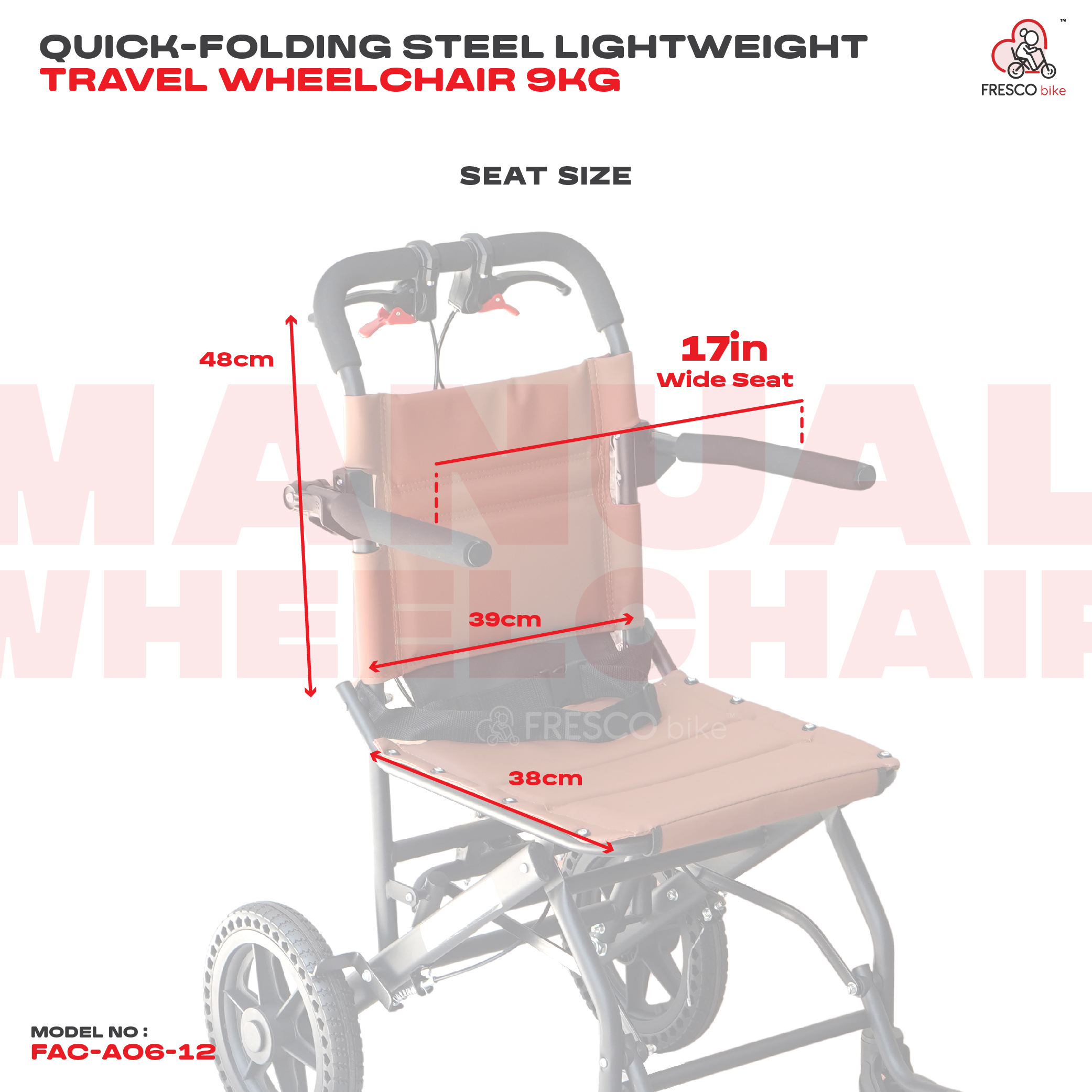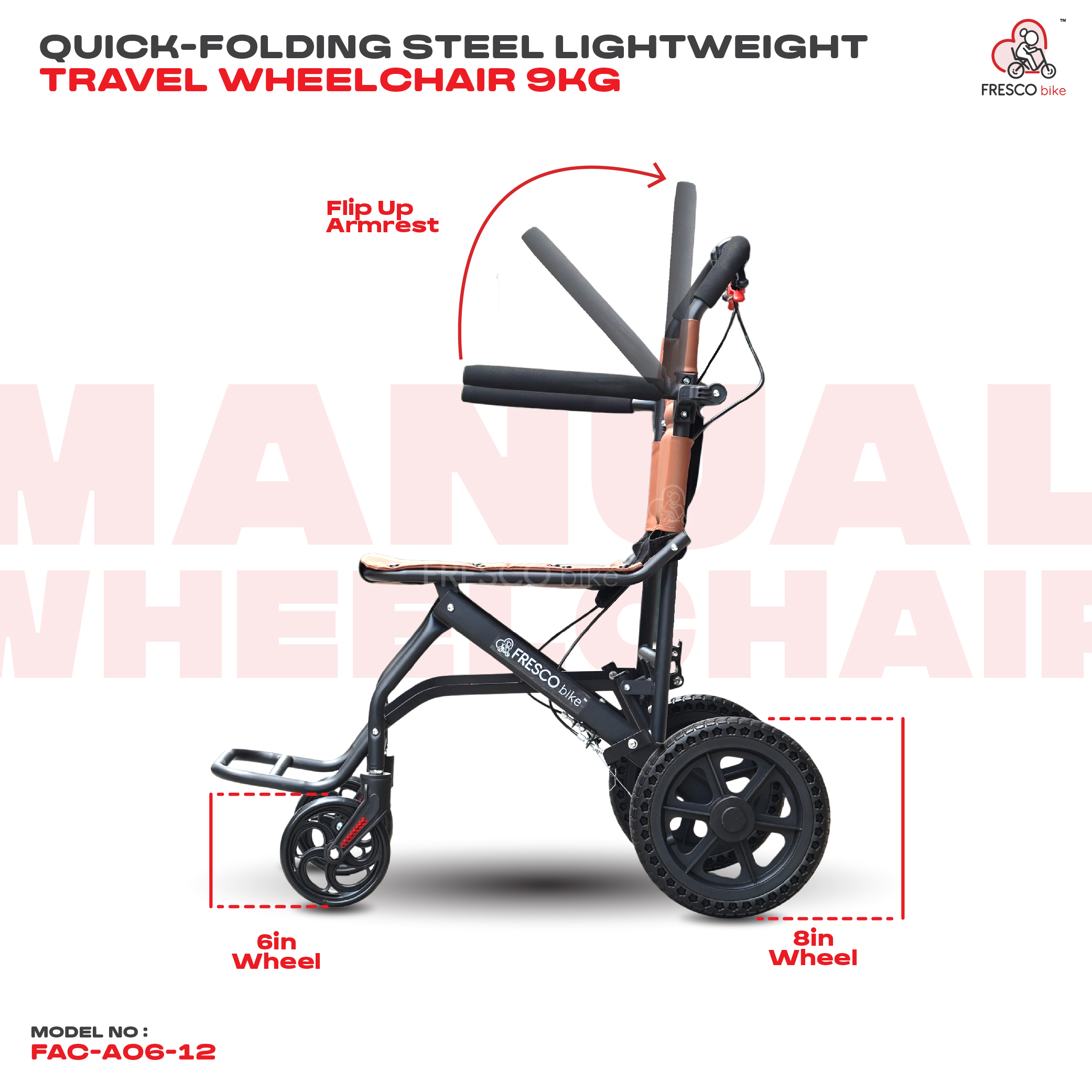 Quick-Folding Steel Lightweight Travel Wheelchair 9kg Model: FAC-A06-12