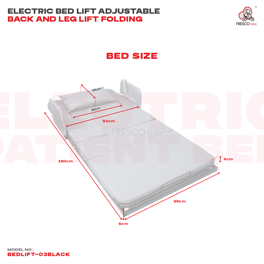 Overall Length: 1900mm Overall Width: 850mm Bed Surface Height: 600mm Sleep Surface Length: 1900mm Sleep Surface Width: 850mm Backrest Angle: 0-80’ Leg Section Angle: 0-45’ Weight Capacity:100kg |