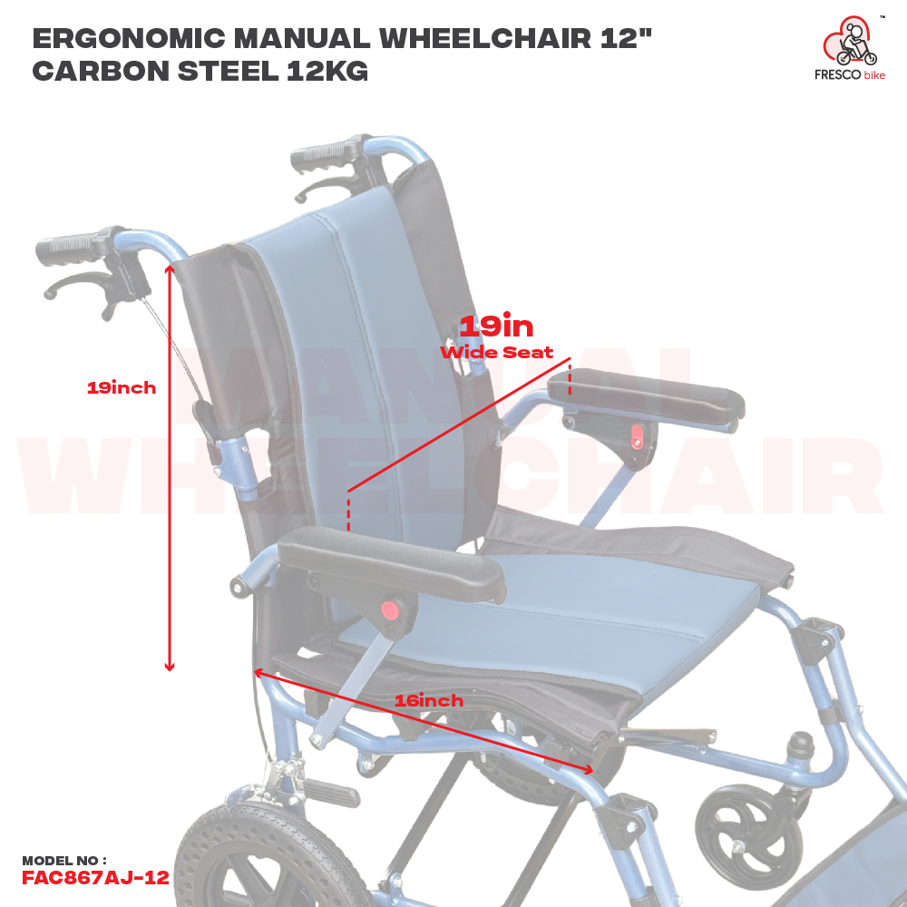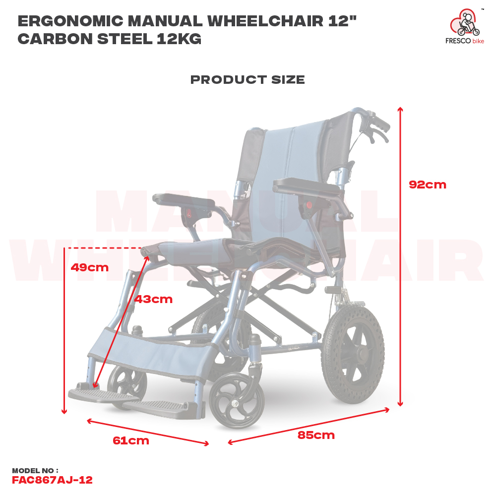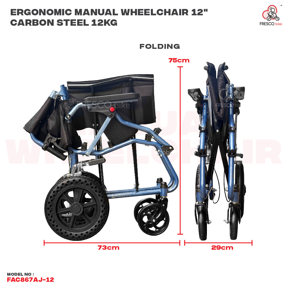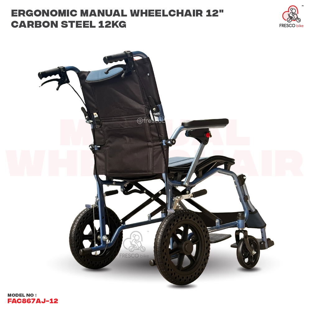 Key Features ✅ Strong Carbon Steel Frame – Durable and sturdy for long-term use. ✅ Lightweight Design (12kg) – Easy to lift, fold, and bring into cars. ✅ Compact & Foldable – Ideal for travel, hospital visits, shopping, or home use. ✅ Comfortable Seating – 48cm seat width, 42cm depth, and 49.5cm seat height. ✅ Safety & Stability – Equipped with 6-inch front PVC wheels and 12-inch rear PVC wheels. ✅ Convenient Armrest – Comfortable 20cm armrest height. ✅ Portable Package Size – 65 × 28 × 78 cm. ✅ Maximum Support & Back Comfort – 50cm backrest height.