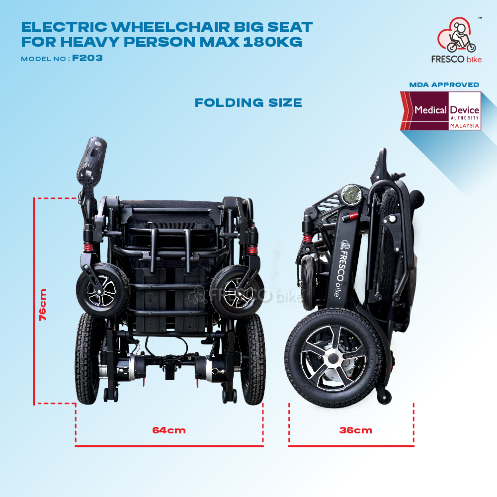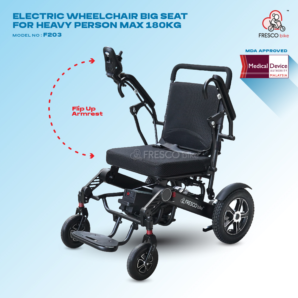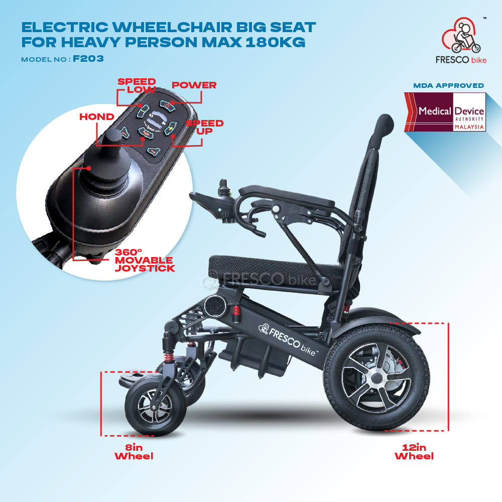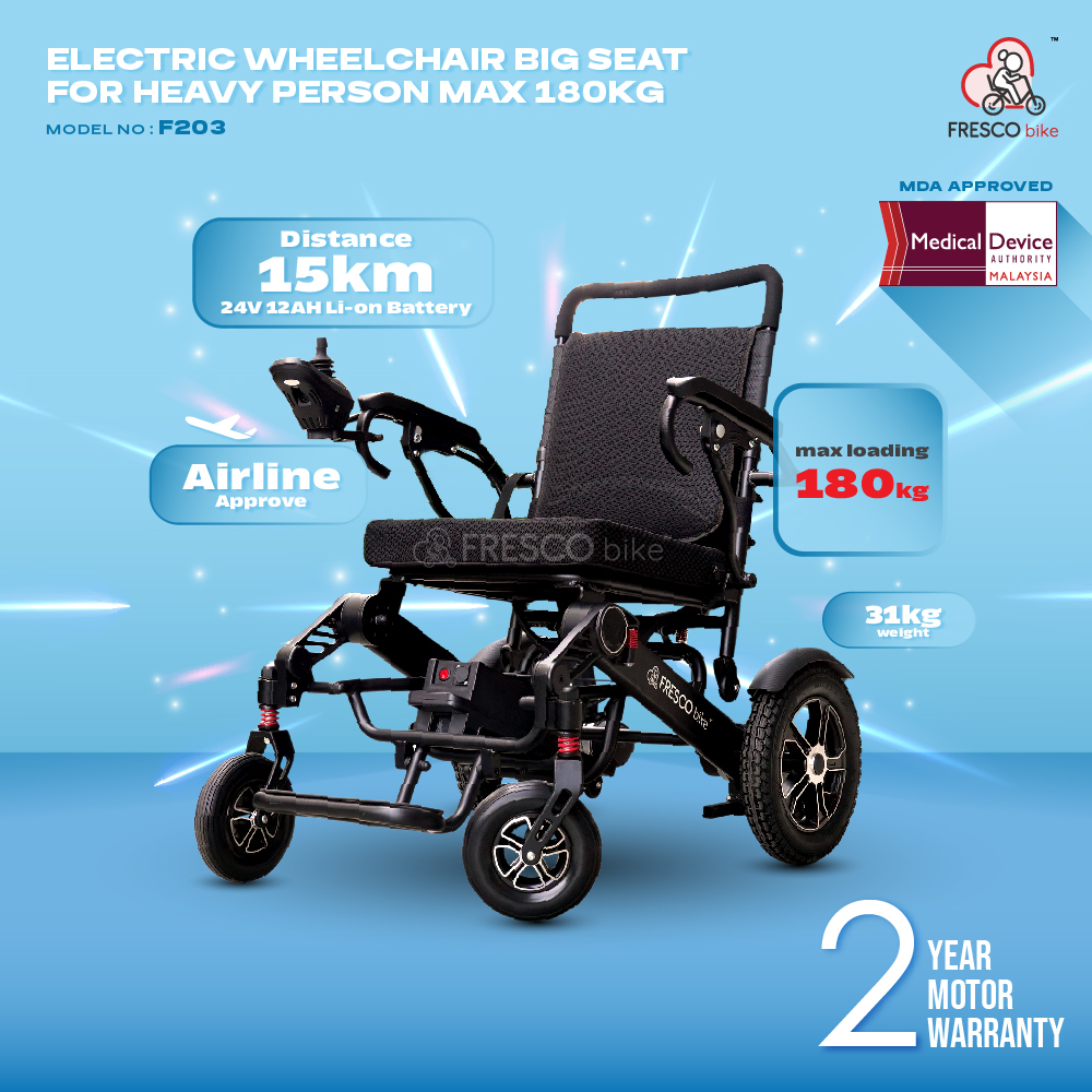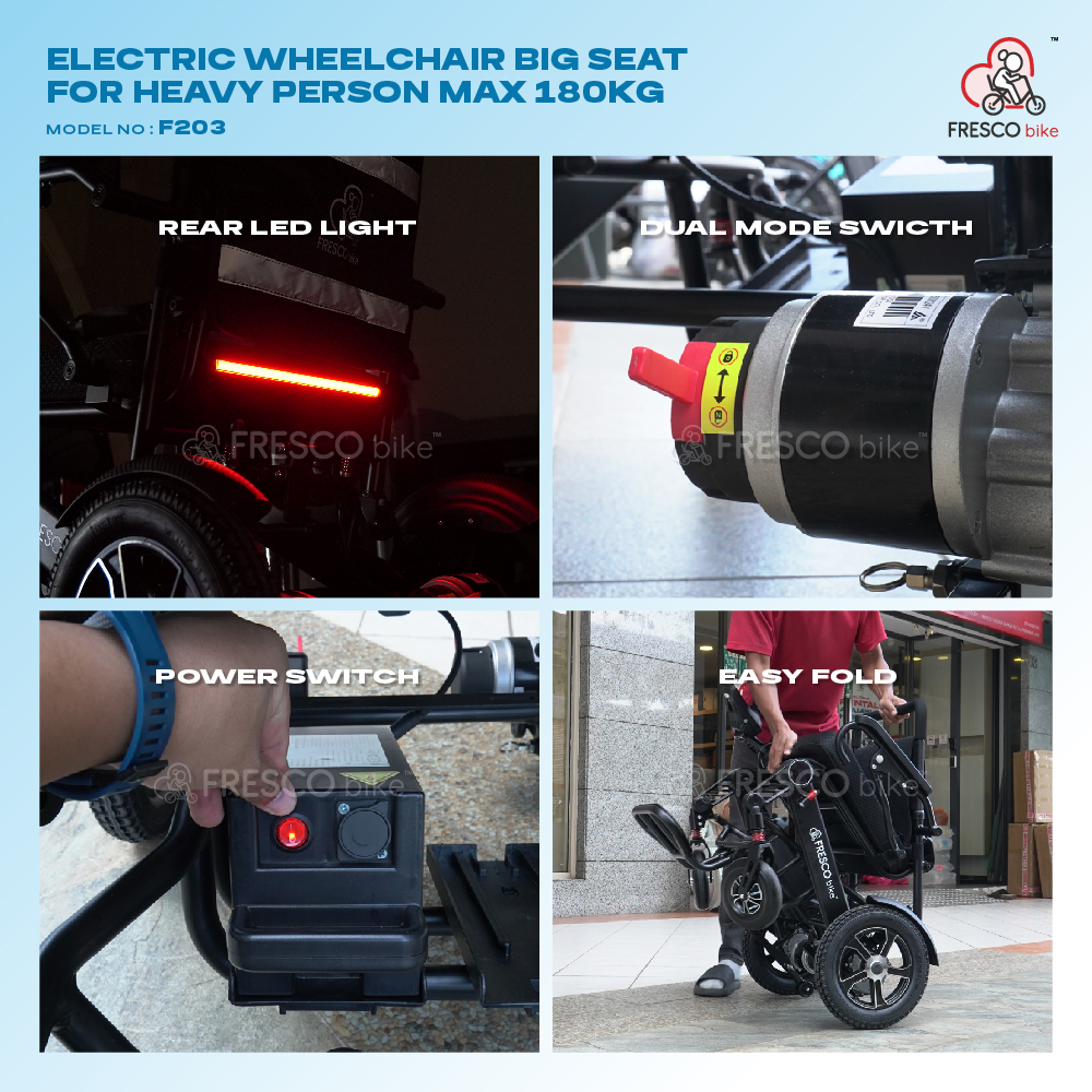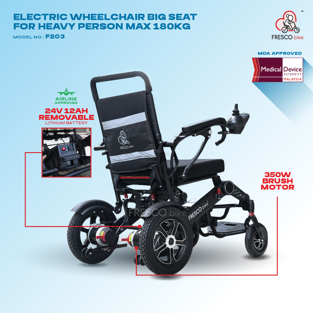 FRESCO MAX 180KG Heavy Duty Electric Wheelchair (350W) Model: F203 (With Back Light)